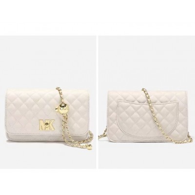英国MK时尚链条菱格单肩包包 MK8378米白色