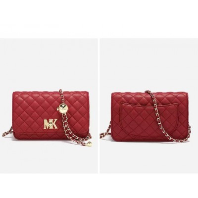 英国MK时尚链条菱格单肩包包 MK8378酒红
