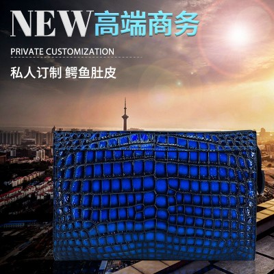 男士高端大气商务休闲手拿包 鳄鱼骨皮 SN62008 蓝色肚皮