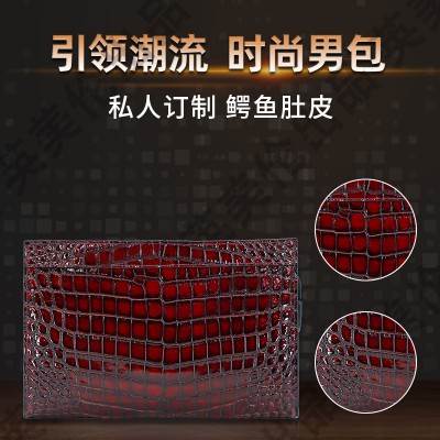 男士商务大气鳄鱼骨皮手拿包SN62013 红色肚皮