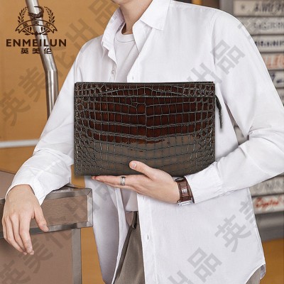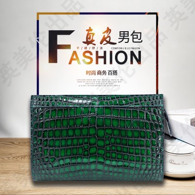 男士商务大气鳄鱼骨皮手拿包SN62013 绿色肚皮
