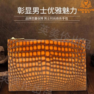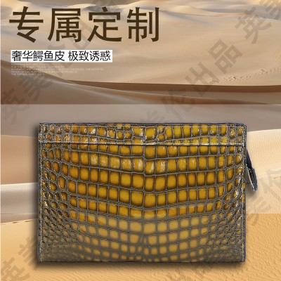 男士商务大气鳄鱼骨皮手拿包SN62013 黄色肚皮