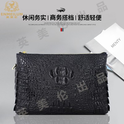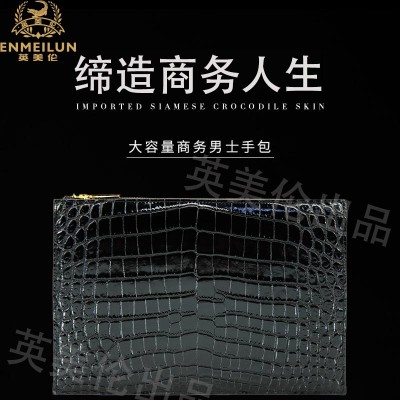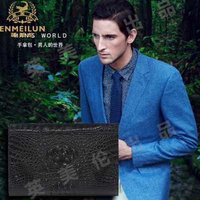 男士商务大气鳄鱼骨皮手拿包SN62013 黑色肚皮