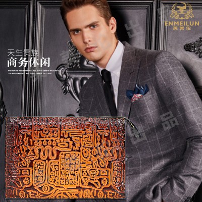男士高端大气商务休闲手拿包 鳄鱼骨皮 SN62008 棕色肚皮
