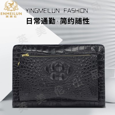 男士商务大气鳄鱼骨皮手拿包SN62013 黑色甲骨文