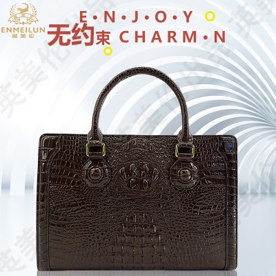 高端大气男士鳄鱼皮手提商务包 JSZ86005 咖色骨皮