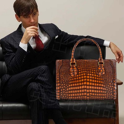 高端大气男士鳄鱼皮手提商务包 JSZ86002 橙色肚皮