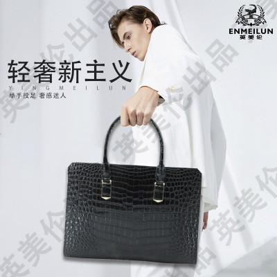 高端大气男士鳄鱼皮手提商务包 JSZ86005 黑色骨皮