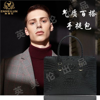 高端大气男士鳄鱼皮手提商务包 JSZ86005 黑色肚皮