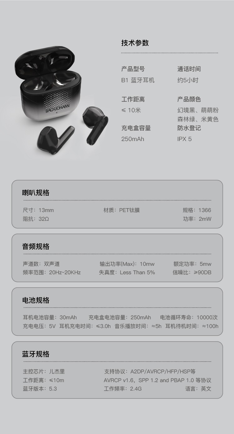 巴赫约翰 BACHJOHANN真无线蓝牙耳机B1