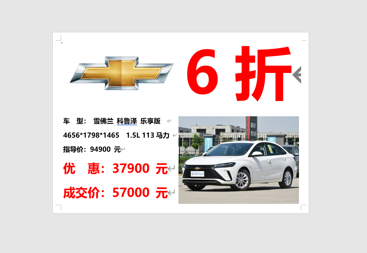 雪佛兰 科鲁泽 6折