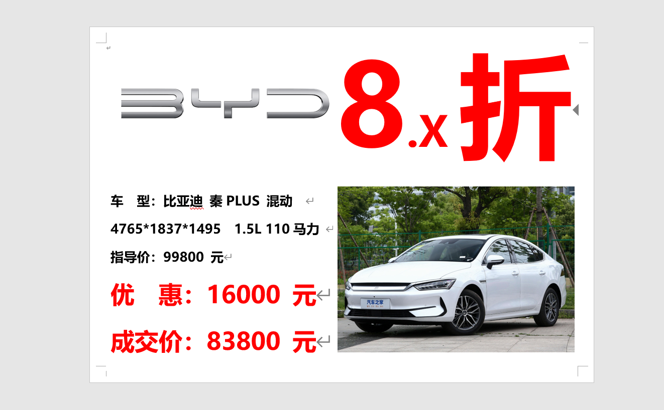 比亚迪 秦PLUS 8折多