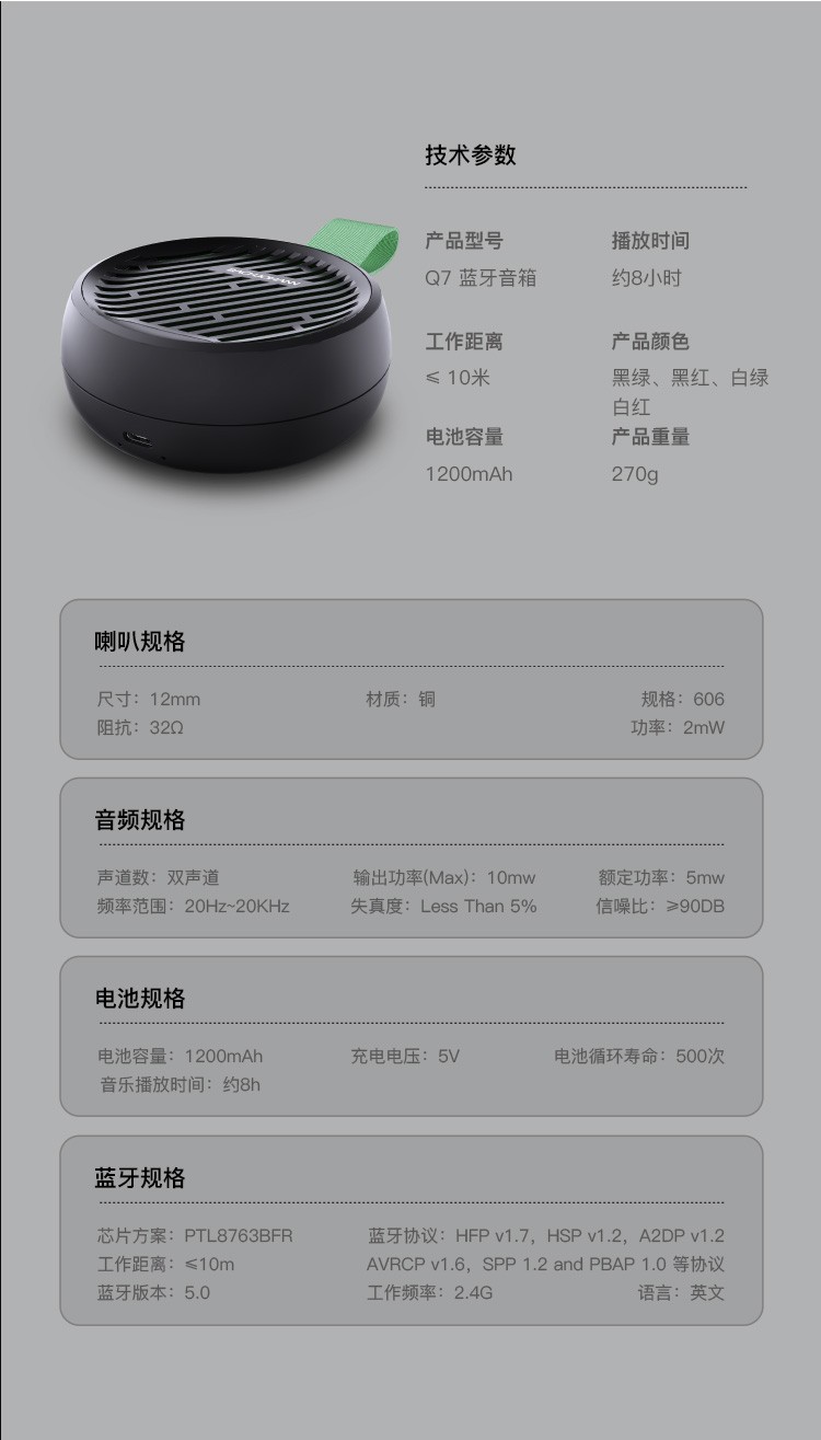 巴赫约翰 BACHJOHANN运动蓝牙音箱Q7