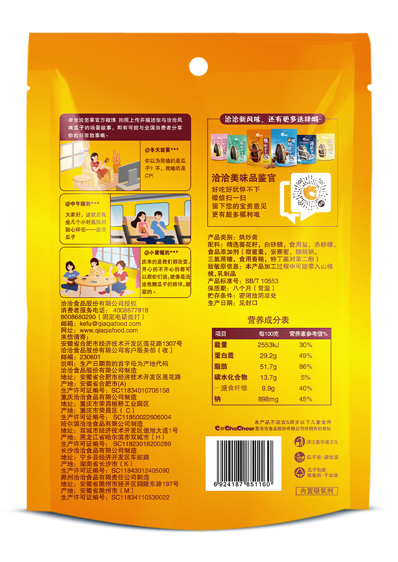 洽洽 焦糖瓜子 网红口味葵花籽 休闲零食 108g*5袋