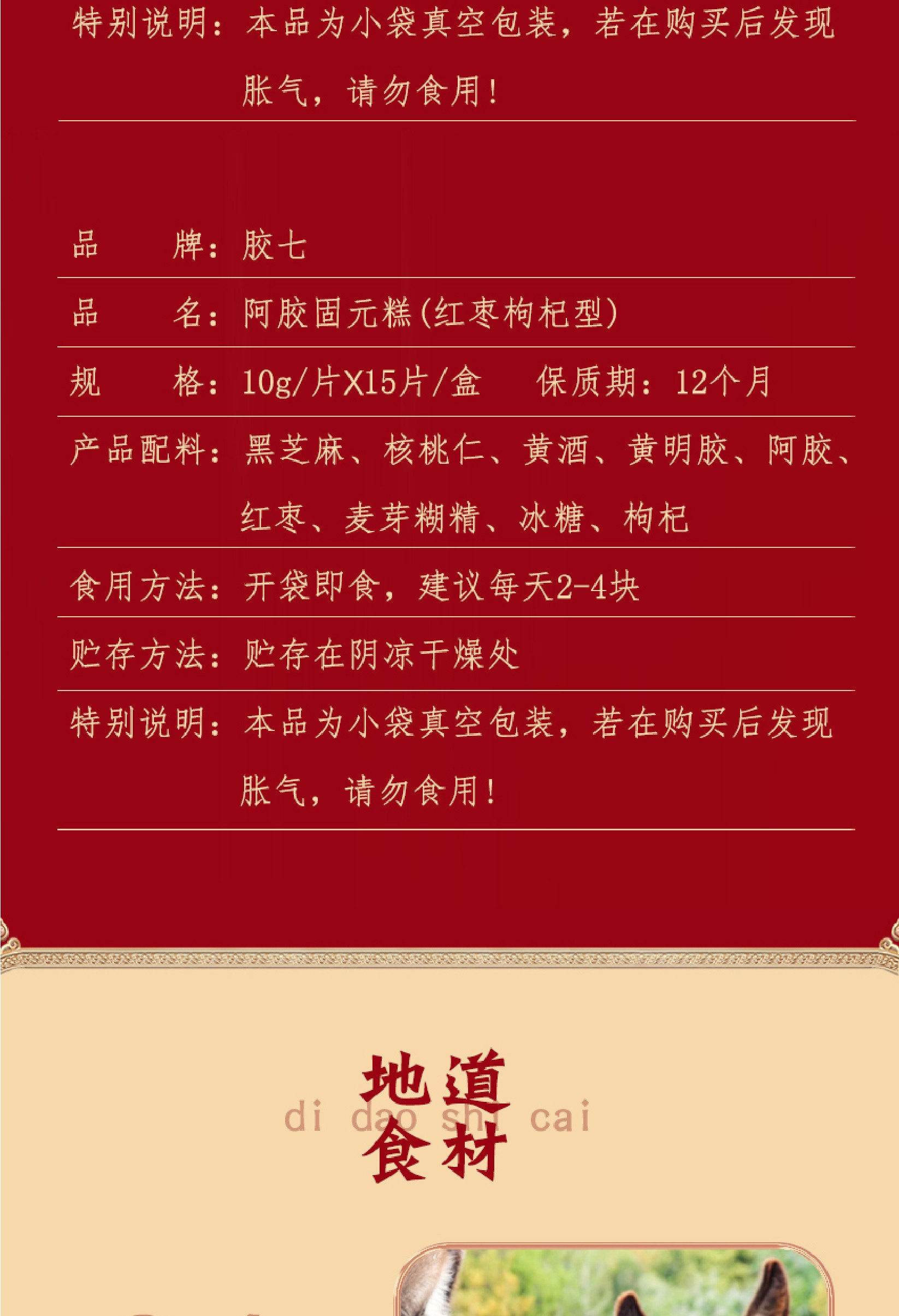 胶七阿胶固元糕(红枣枸杞型)150g/盒