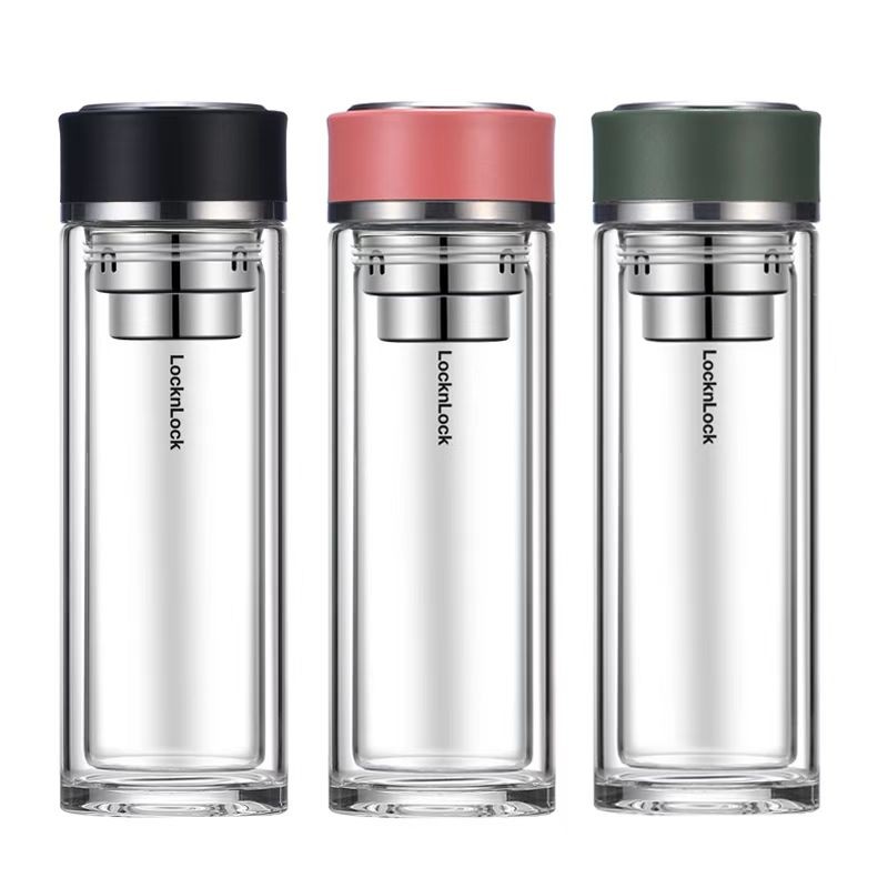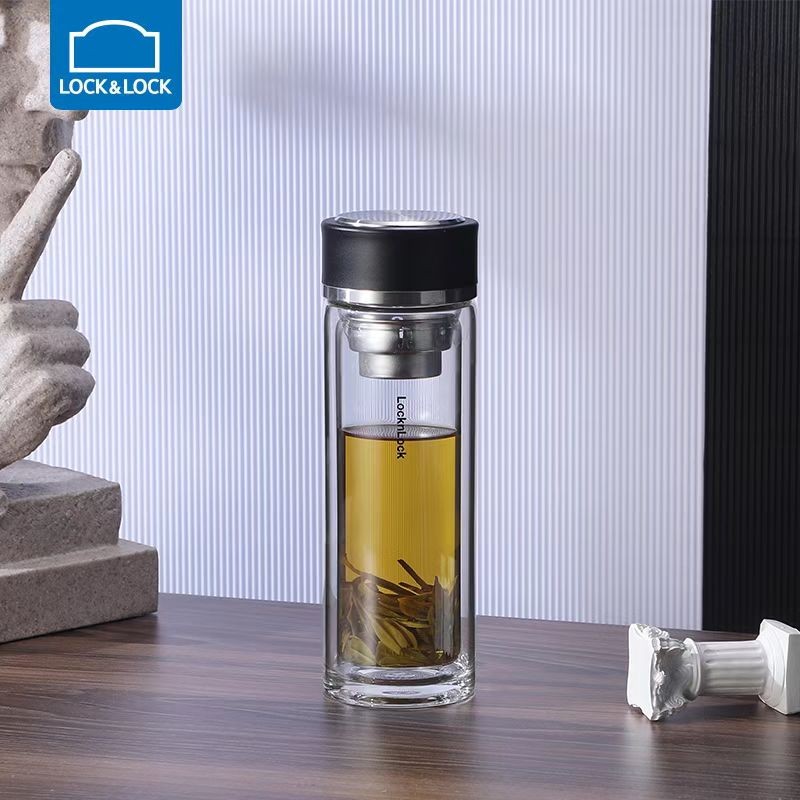 乐扣乐扣 双层玻璃杯男女水杯隔热过滤家用商务办公室泡茶杯LLG629