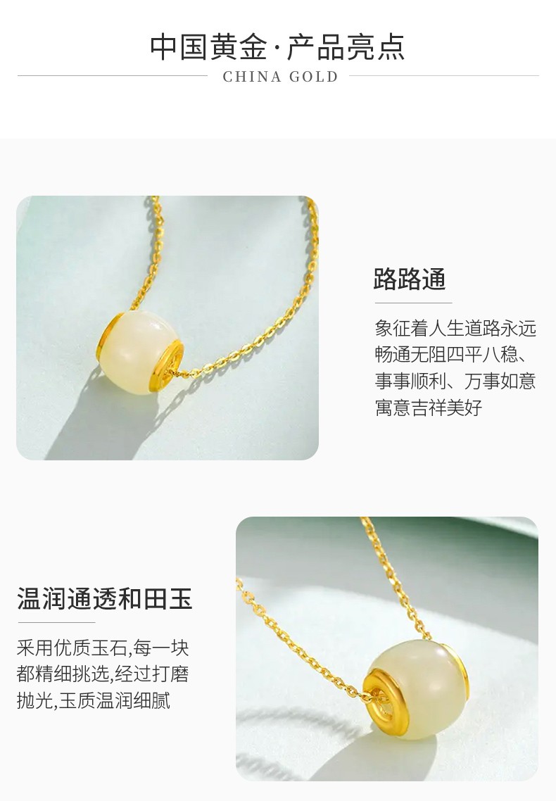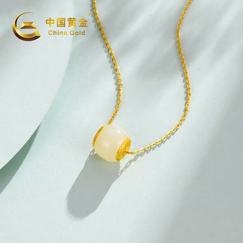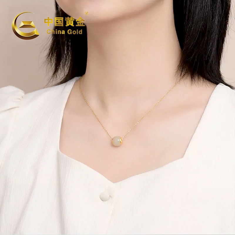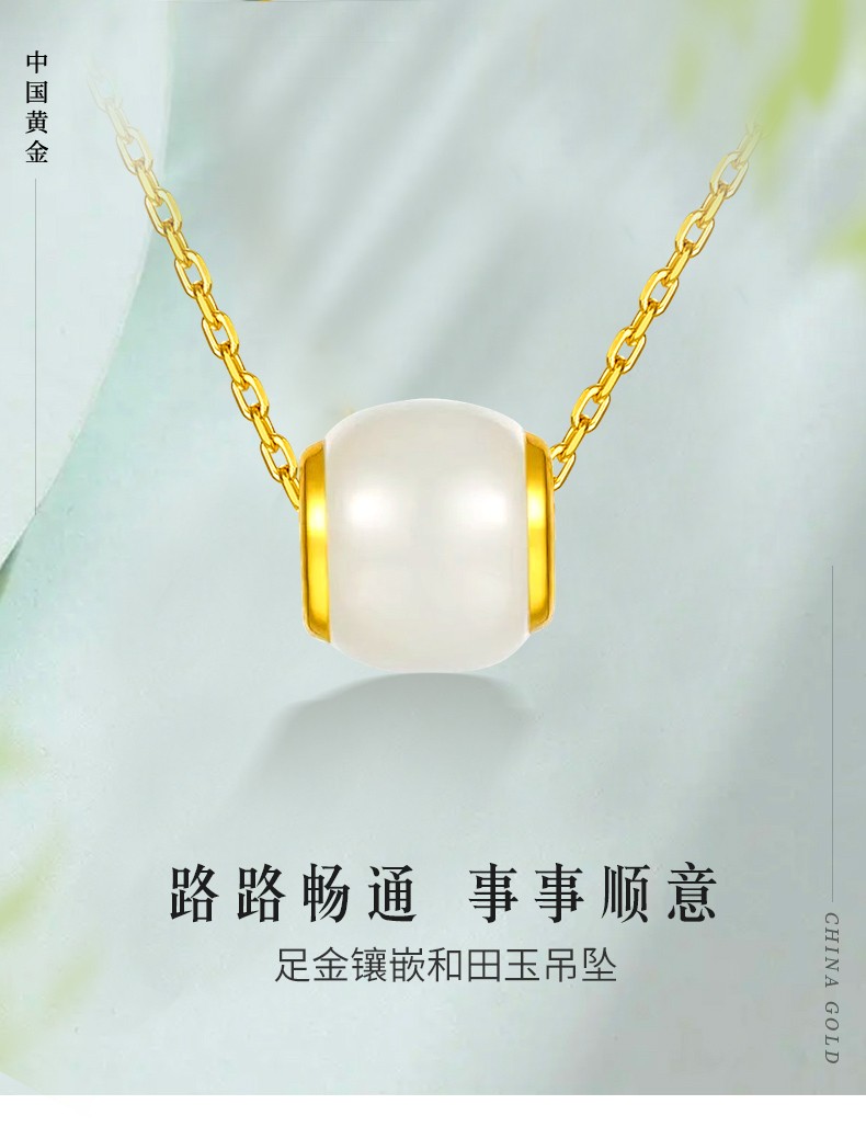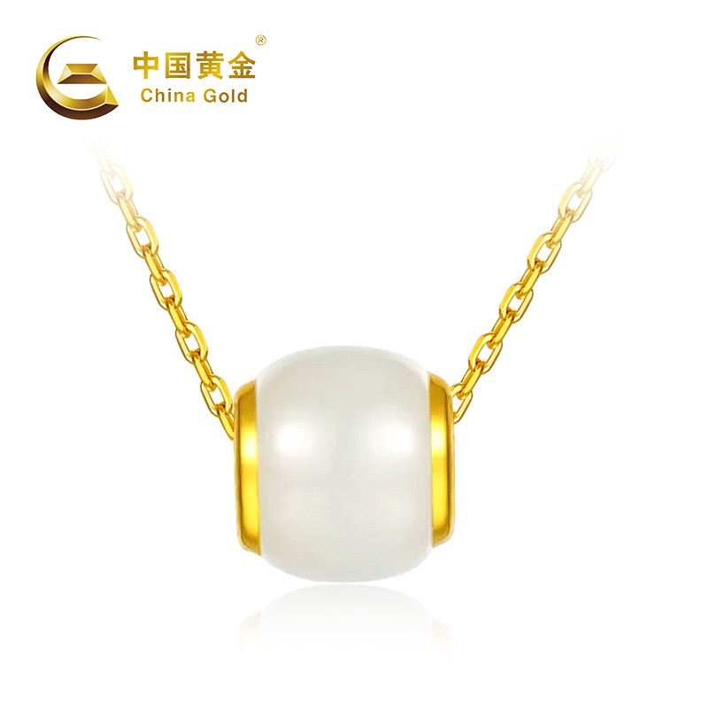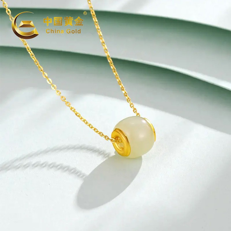 中国黄金 金镶和田玉转运珠吊坠(送S925银链)ZGHJ211035-X