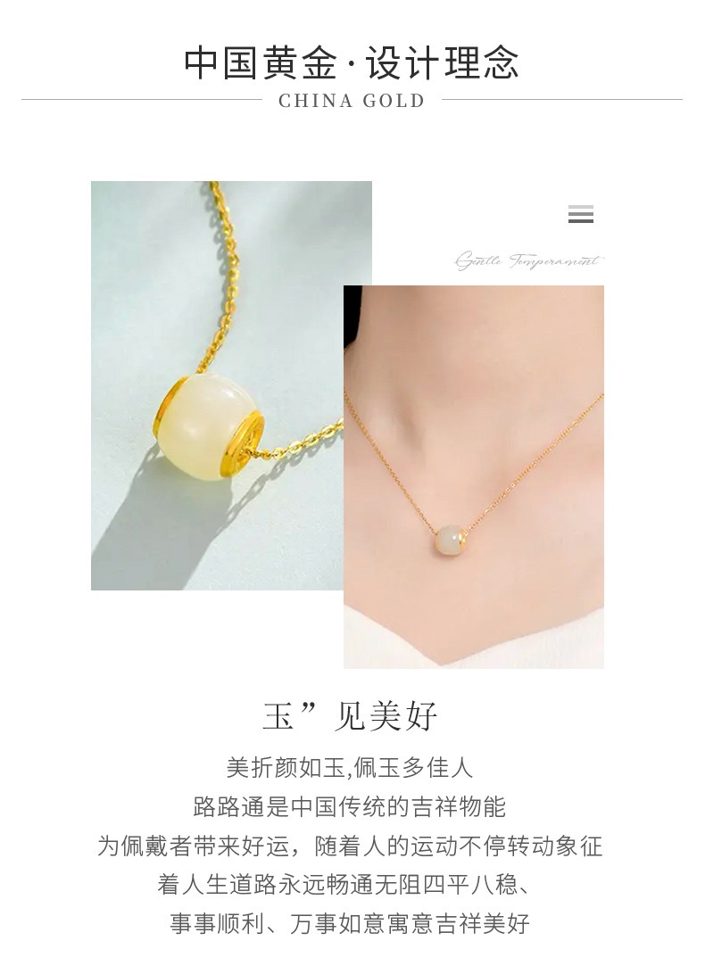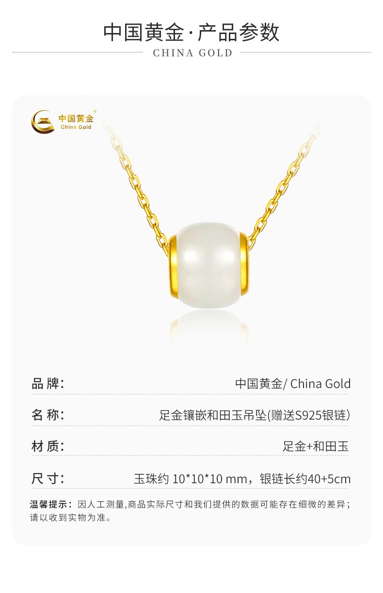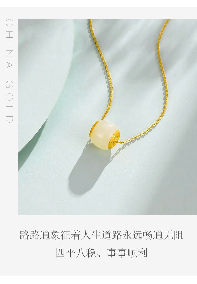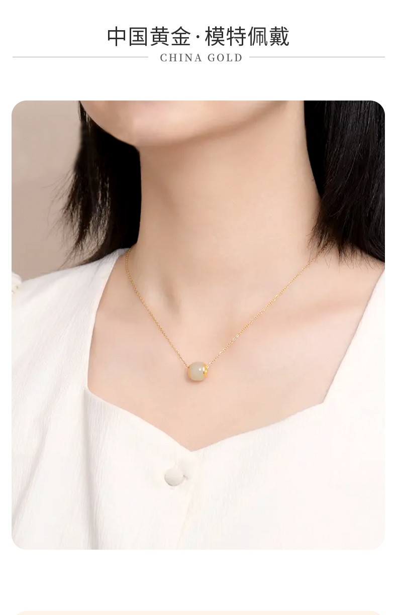 中国黄金 金镶和田玉转运珠吊坠(送S925银链)ZGHJ211035-X