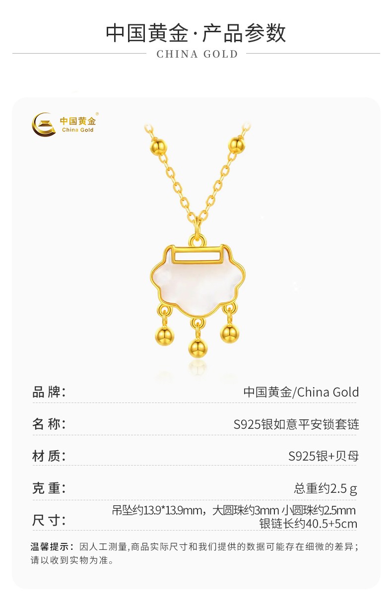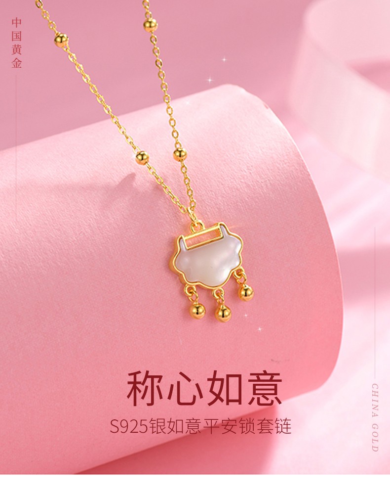 中国黄金S925银如意平安锁套链ZGHJ220984