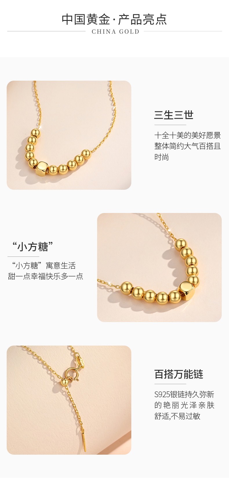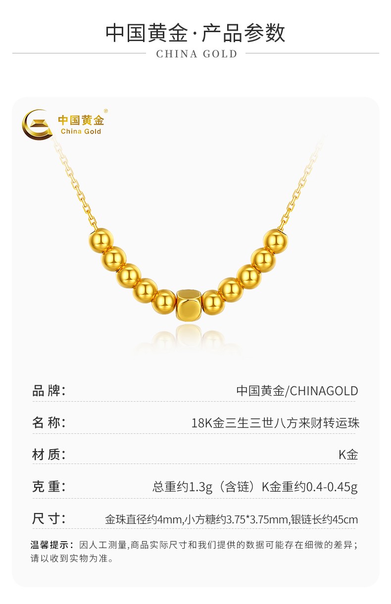 中国黄金18K金轻奢小金珠项链ZGHJ230538