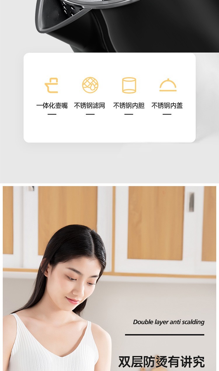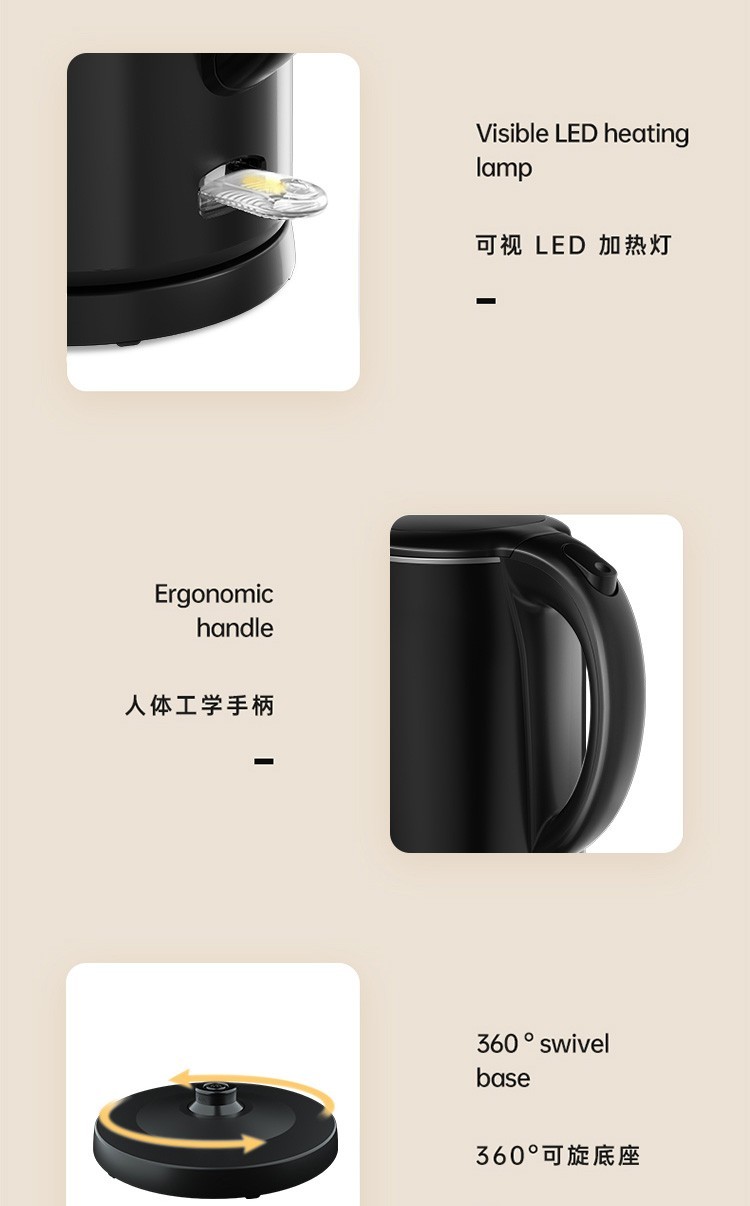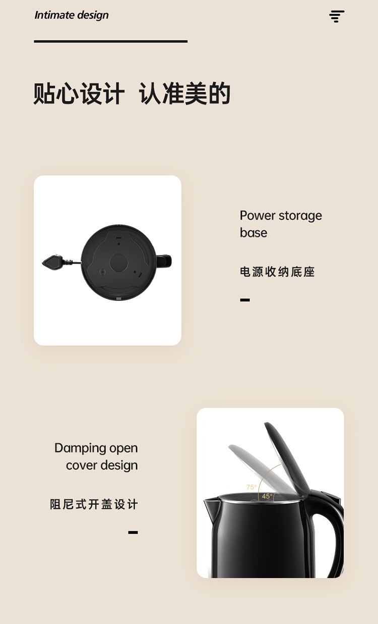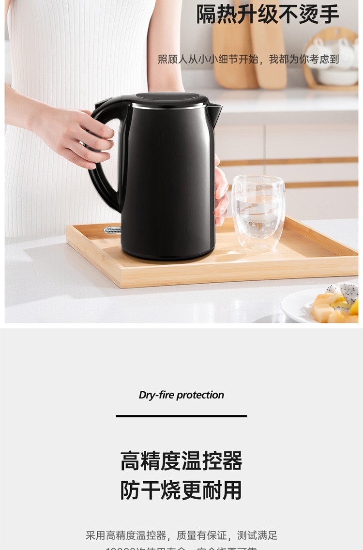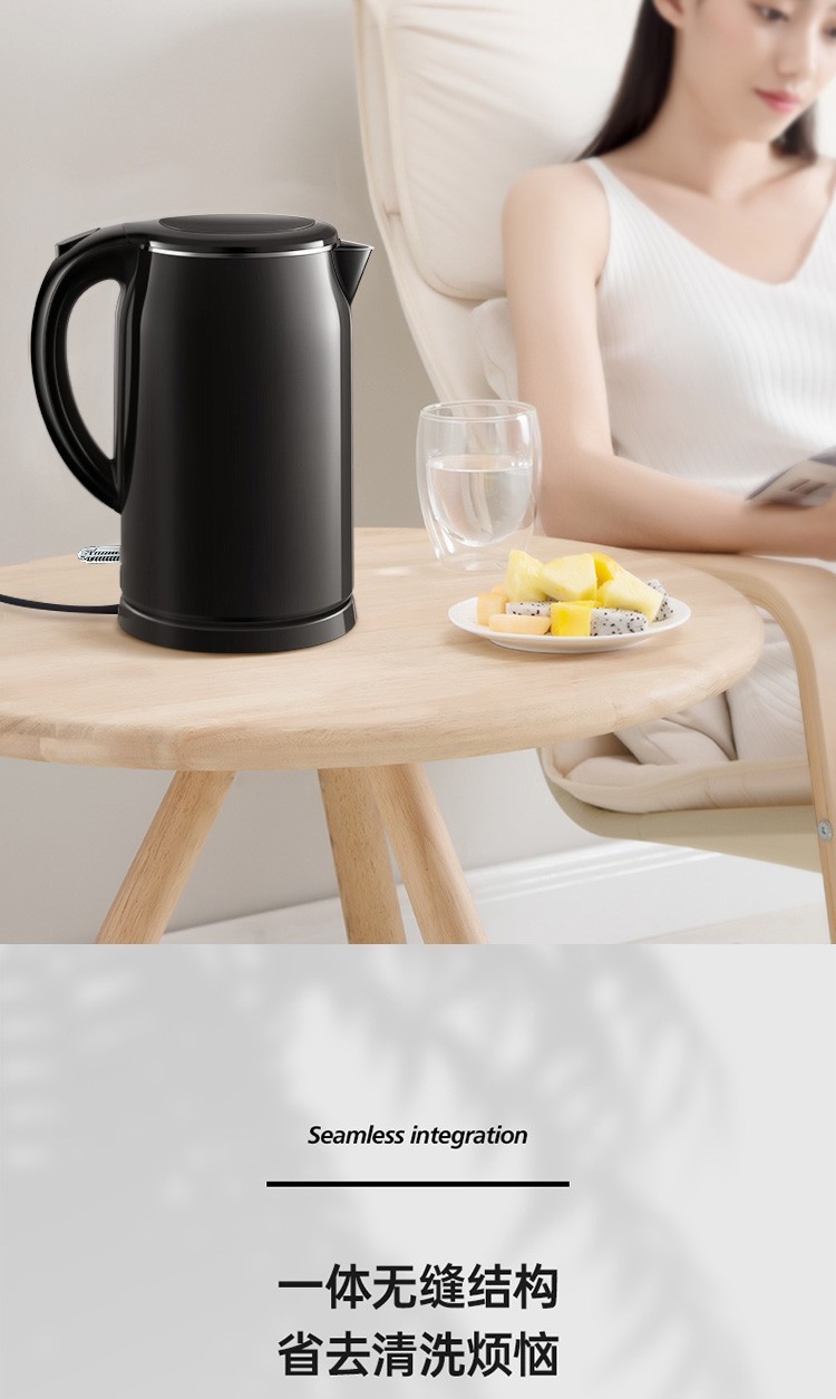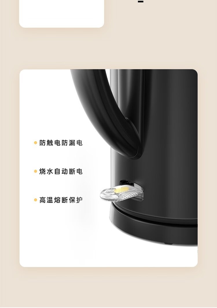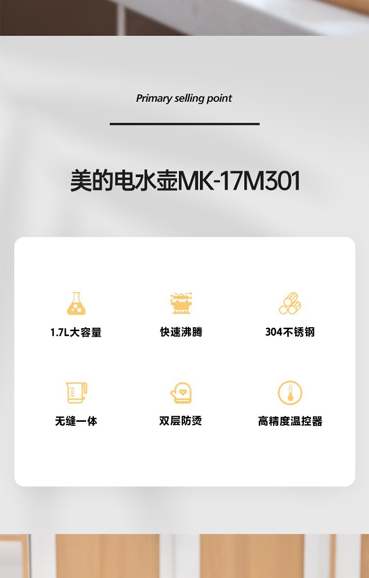 美的(Midea)电热水壶 1.7L大容量 双层防烫 304不锈钢无缝内胆