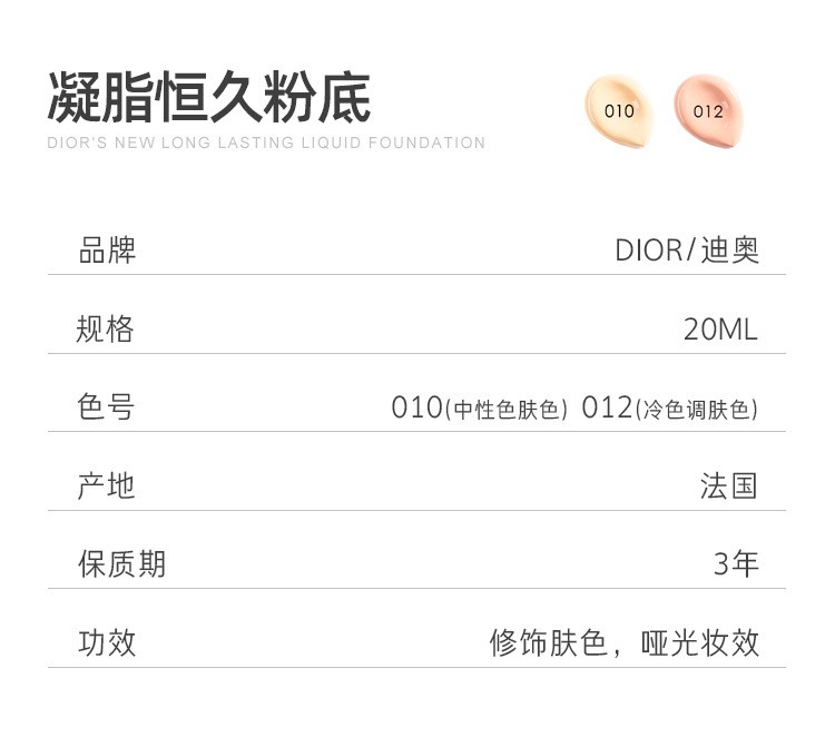 迪奥凝脂恒久粉底液20ml