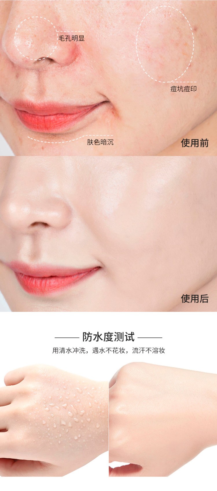 24H超长锁妆、超遮瑕、超水润,皮肤瑕疵统统隐形,滋润不卡粉。