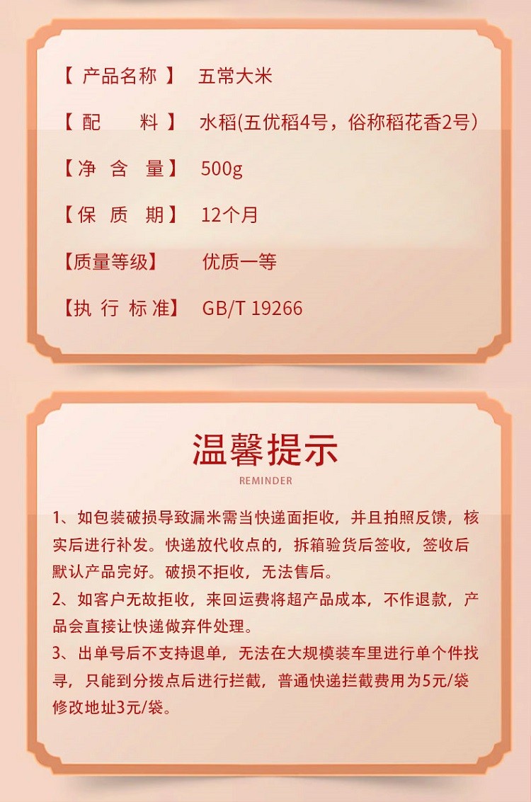 邻家饭香 五常大米 稻花香2号 500g/袋 地标产品黑土地种植LJFX19-W
