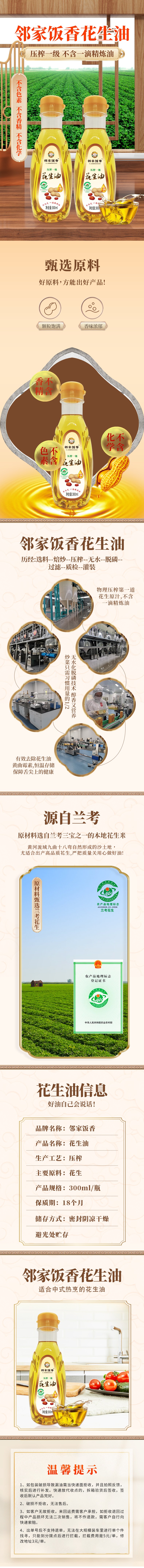 邻家饭香 压榨一级花生油LJFX27 不勾兑精炼油 国家地理标志农产品 兰考花生 原产地直发 300ml/瓶