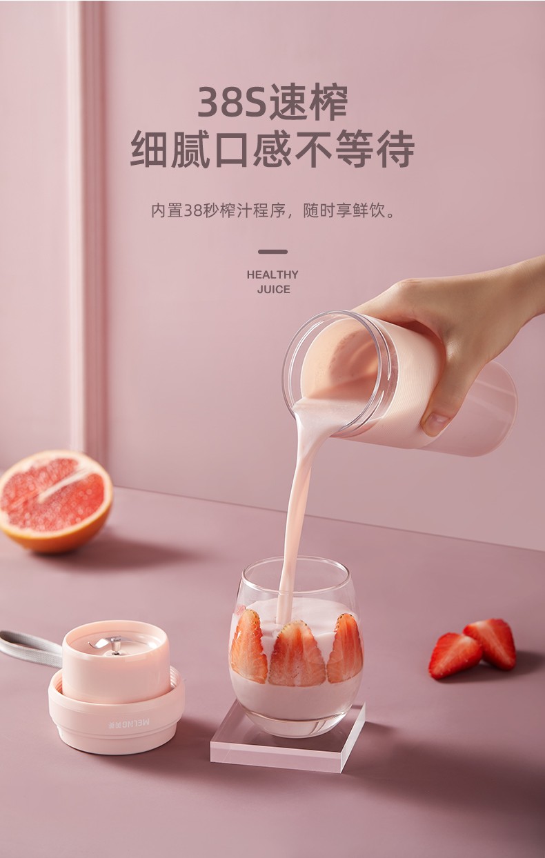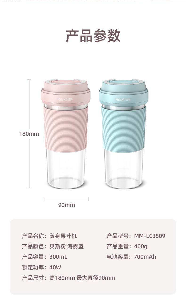 美菱果汁机MM-LC3509 随身杯便携式榨汁杯网红无线充电果汁机 料理机迷你随行杯