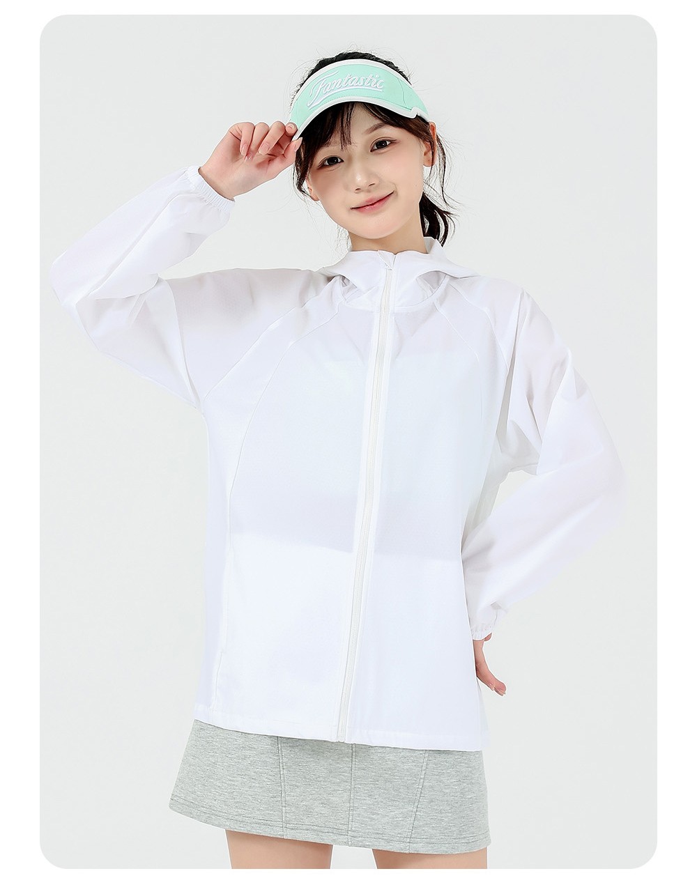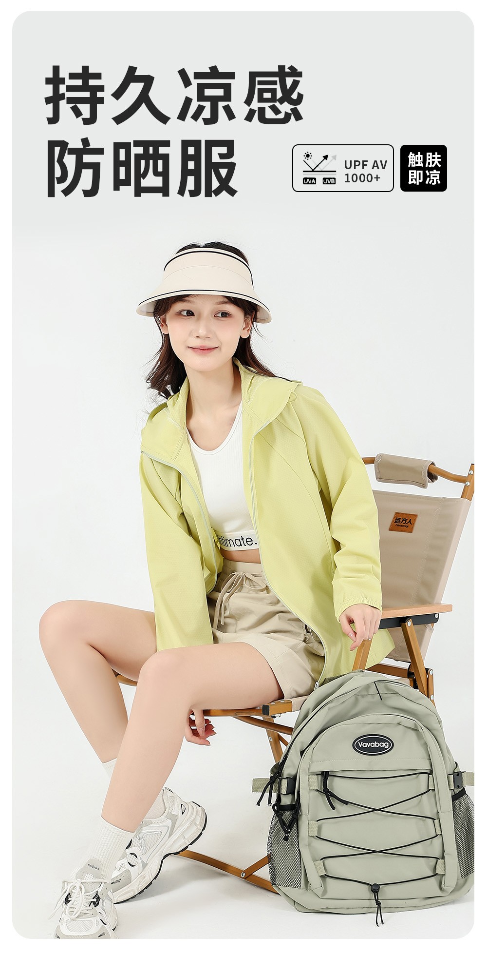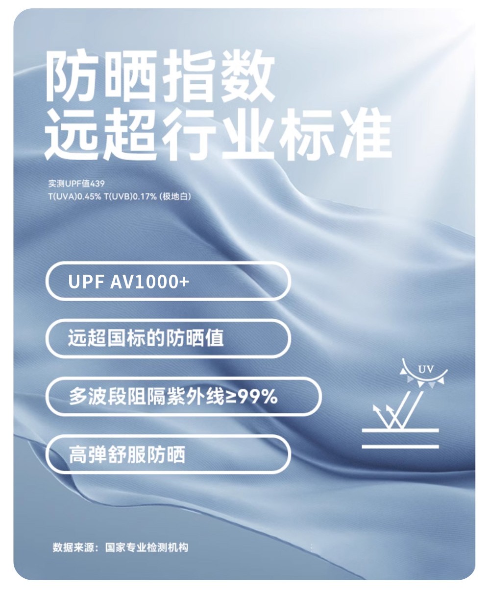 清凉防晒面料,吸收与反弹阳光保护皮肤。