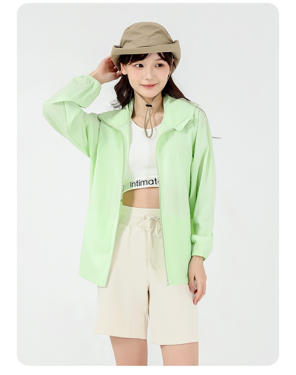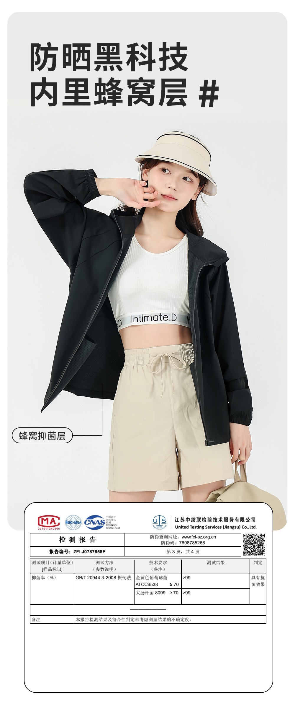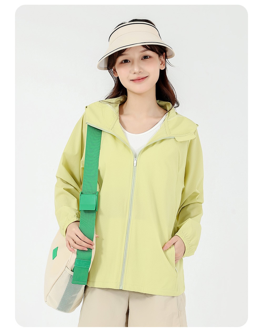 清凉防晒面料,吸收与反弹阳光保护皮肤。