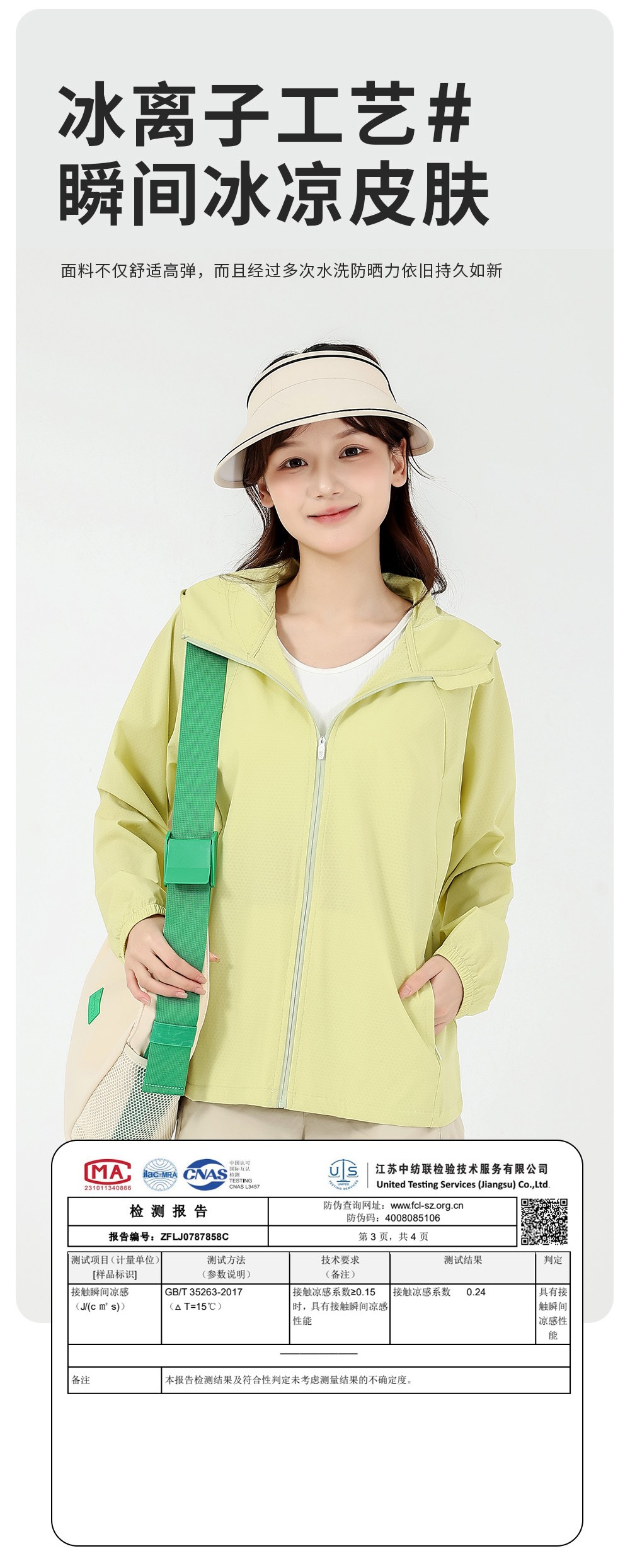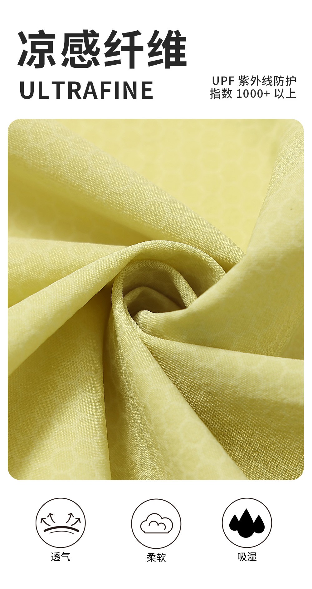 产品卖点: 感烈日炎炎下,接触瞬间即感冰凉清爽触肤凉感,夏天穿戴体感降温,采用冰氧透气功能面料,具备的立体环绕透气性能,穿一整天也不会觉得憋闷凉 ,无论是骑行、逛街、旅游皆适穿,随时随地防紫外线。有效遮蔽99%以上紫外线 悦享夏日阳光