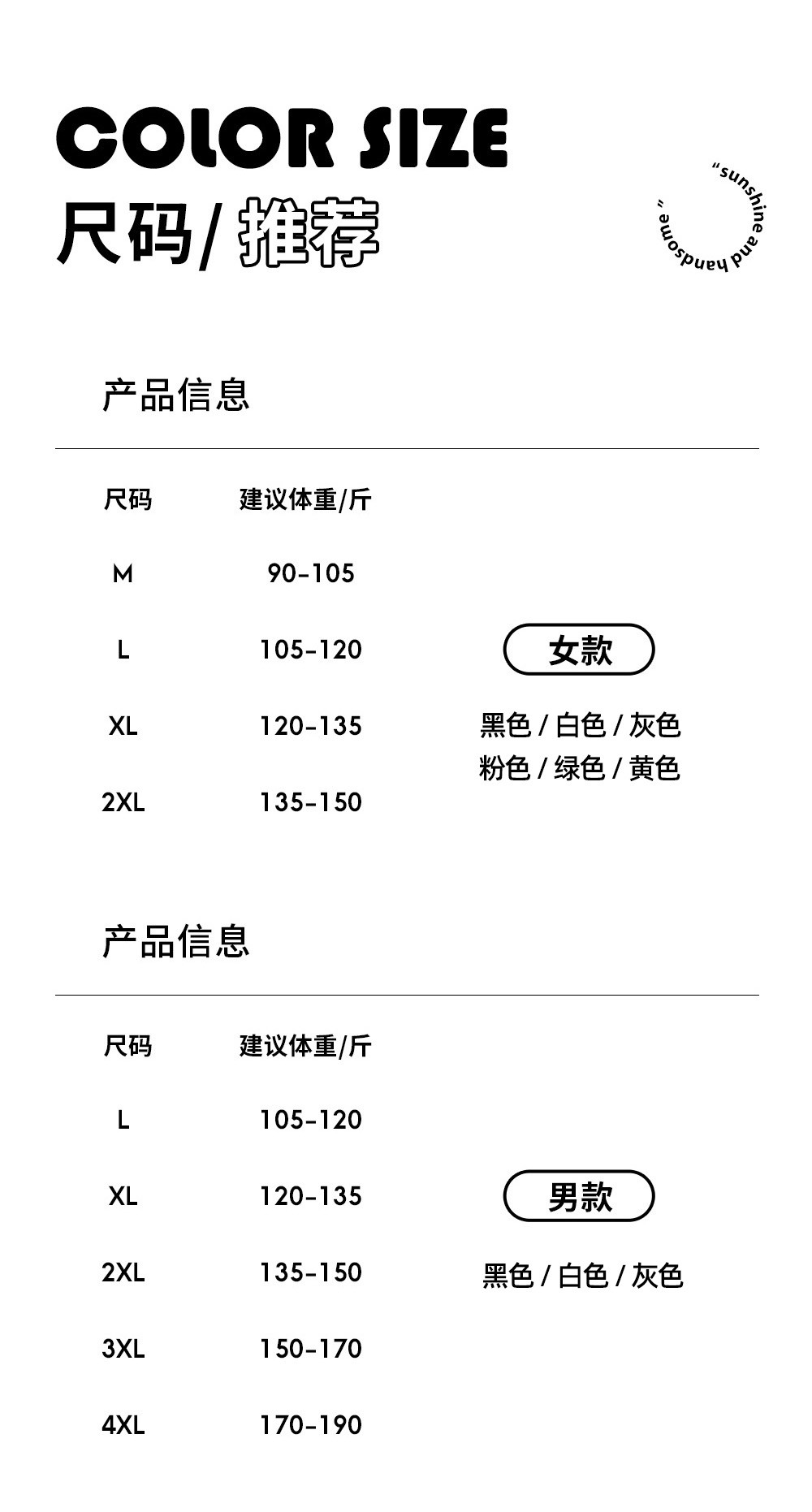 尺码:女款【M-2XL】男款【L-3XL】
