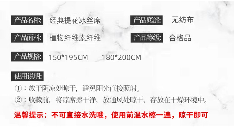 优艺尚 经典提花冰丝席三件套简约时尚 折叠空调席