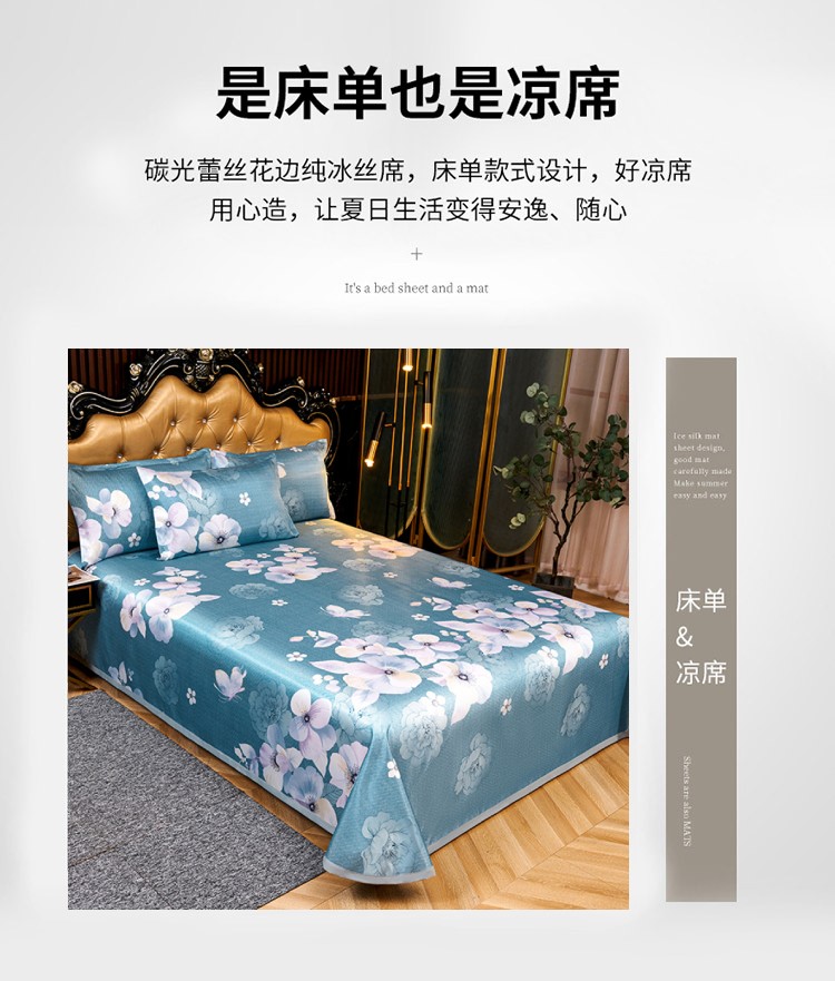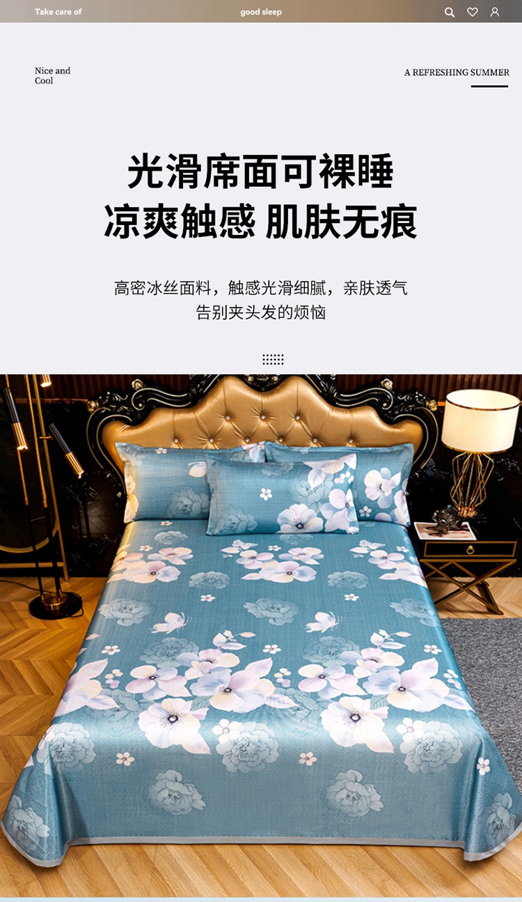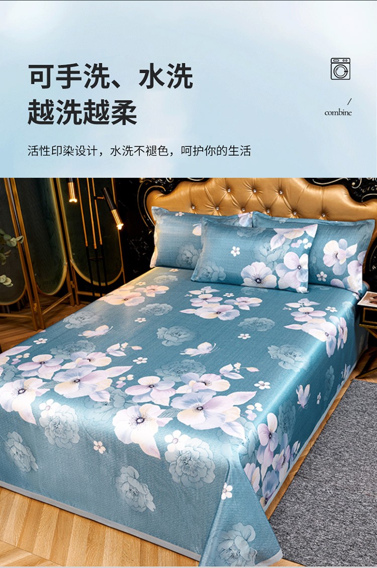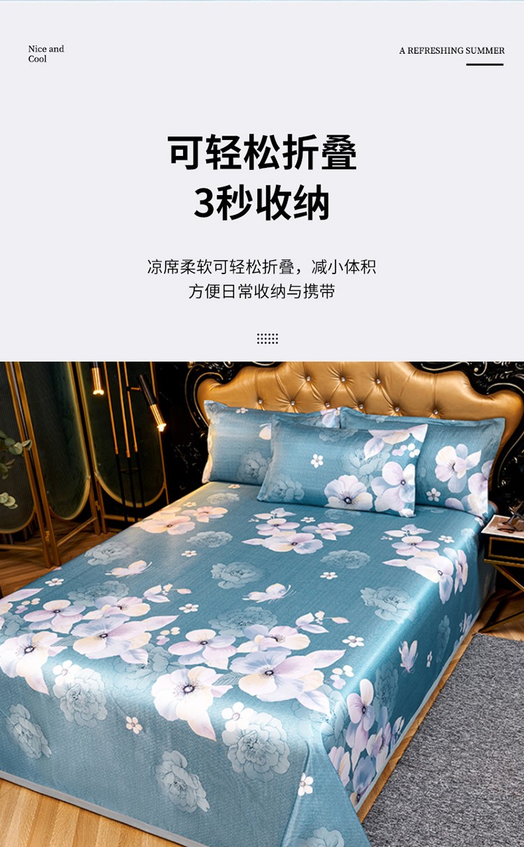 优艺尚 夏语凉感冰丝席 三件套可水洗凉而不冰折叠床单式230*250CM