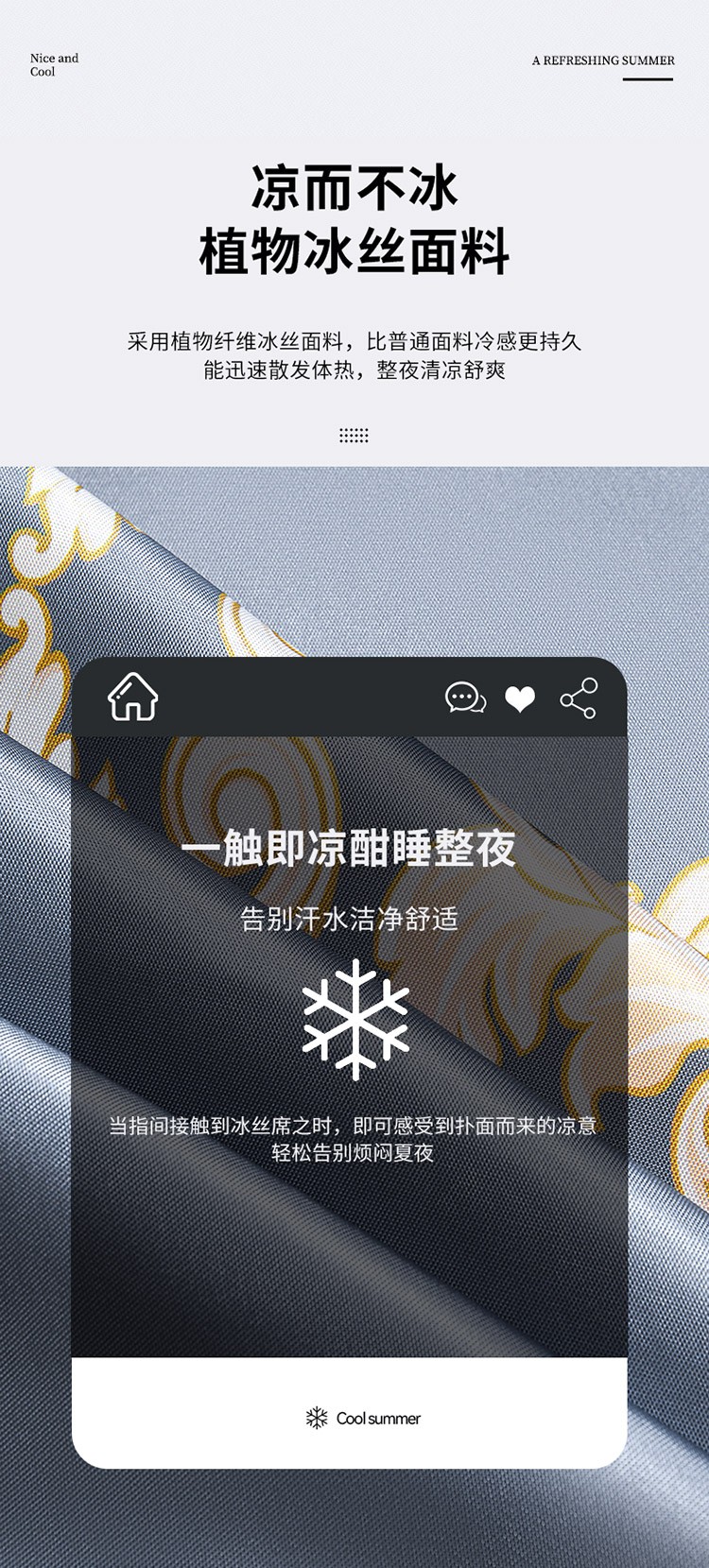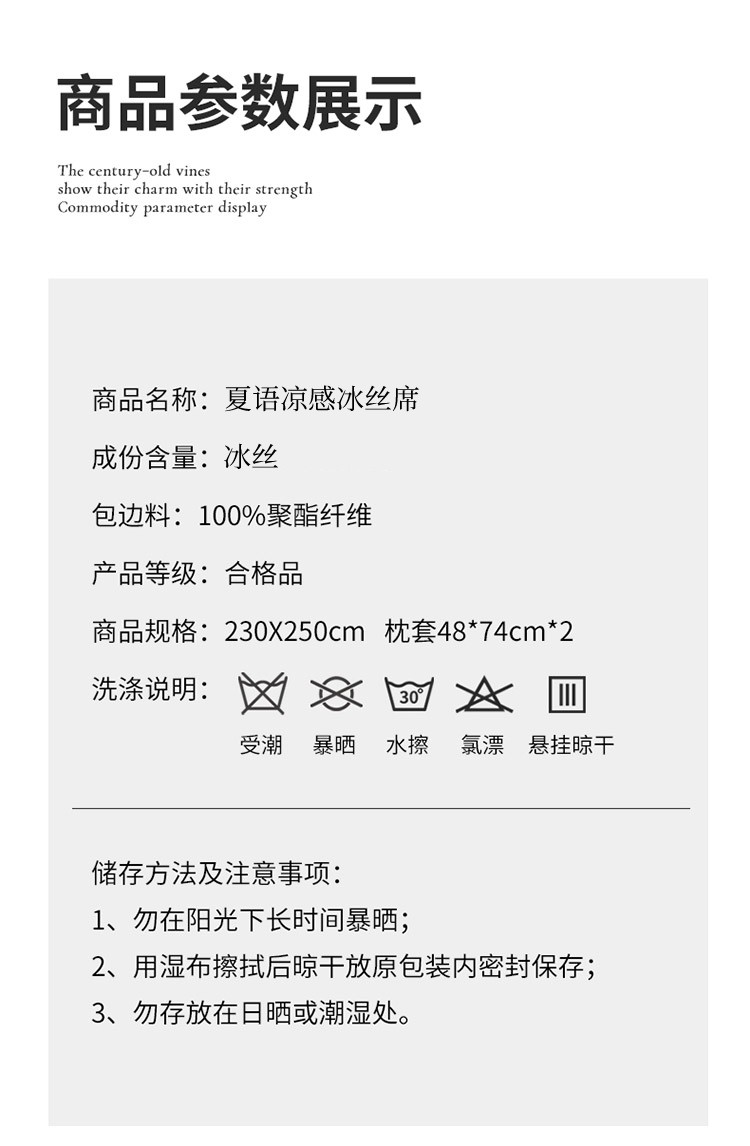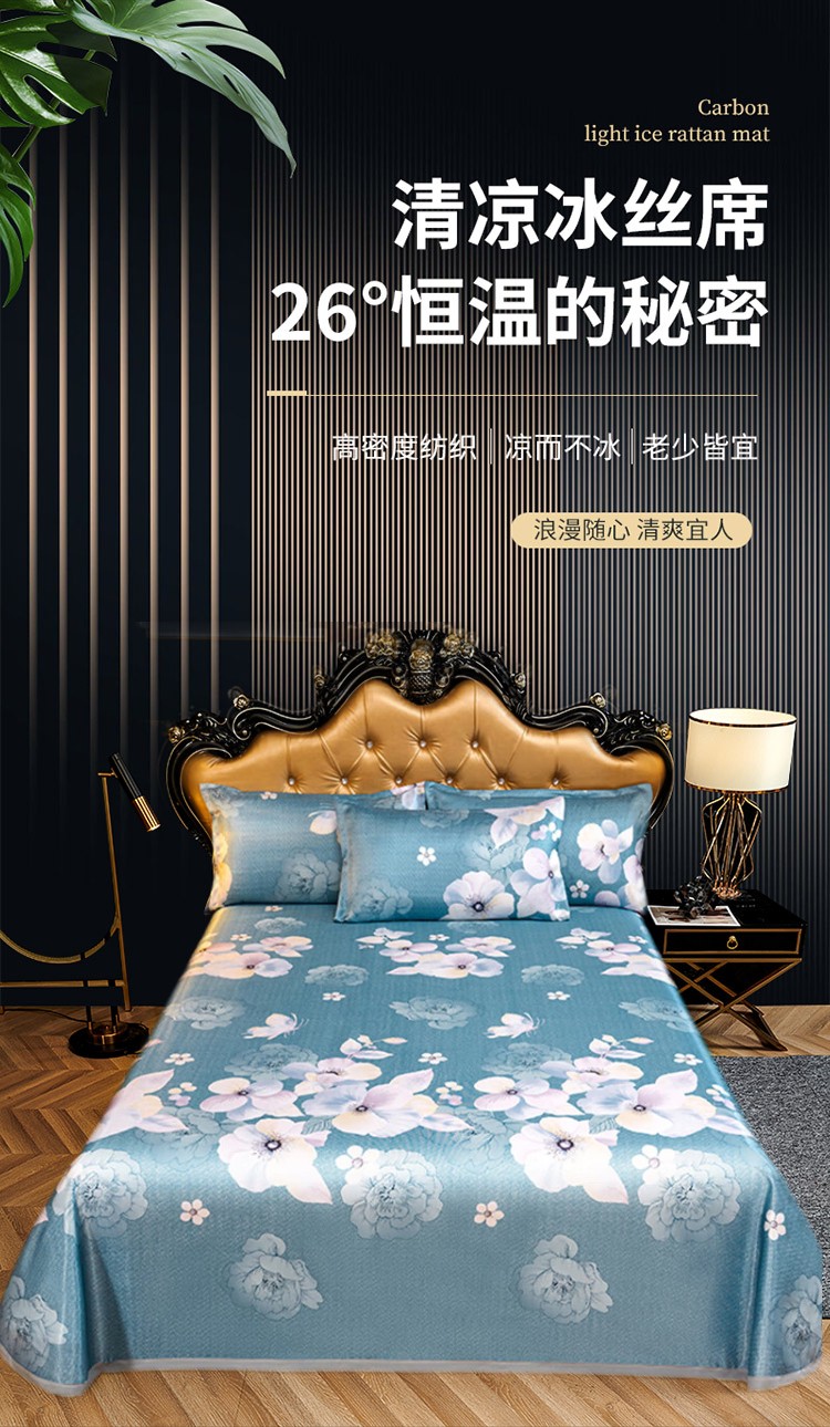 优艺尚 夏语凉感冰丝席 三件套可水洗凉而不冰折叠床单式230*250CM
