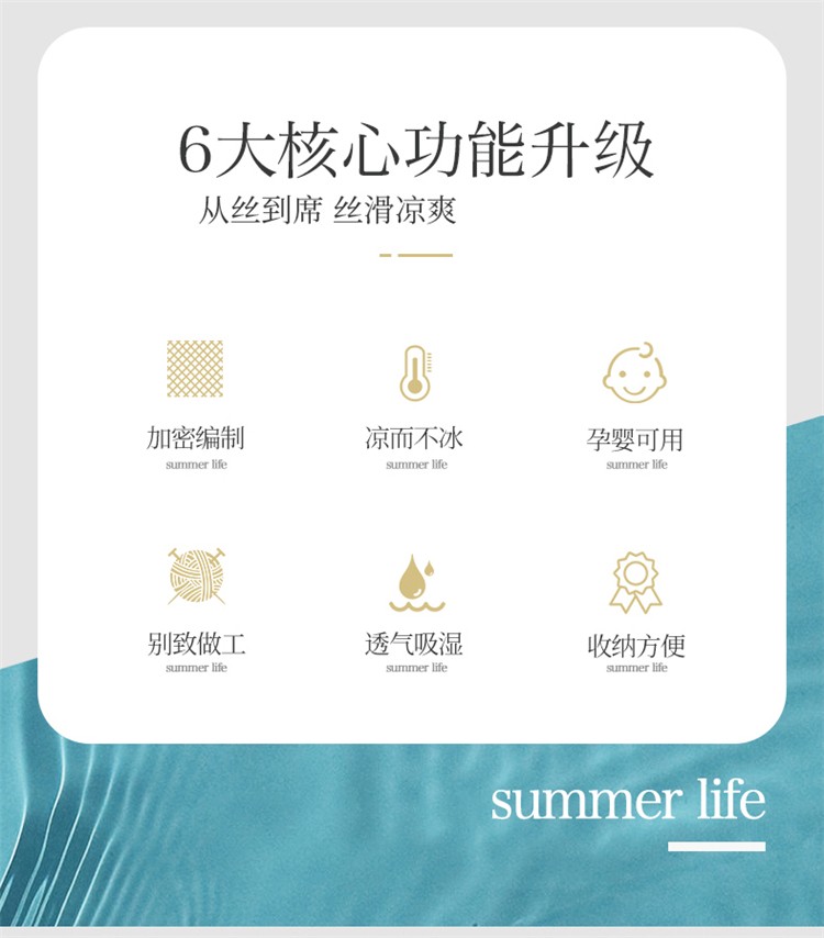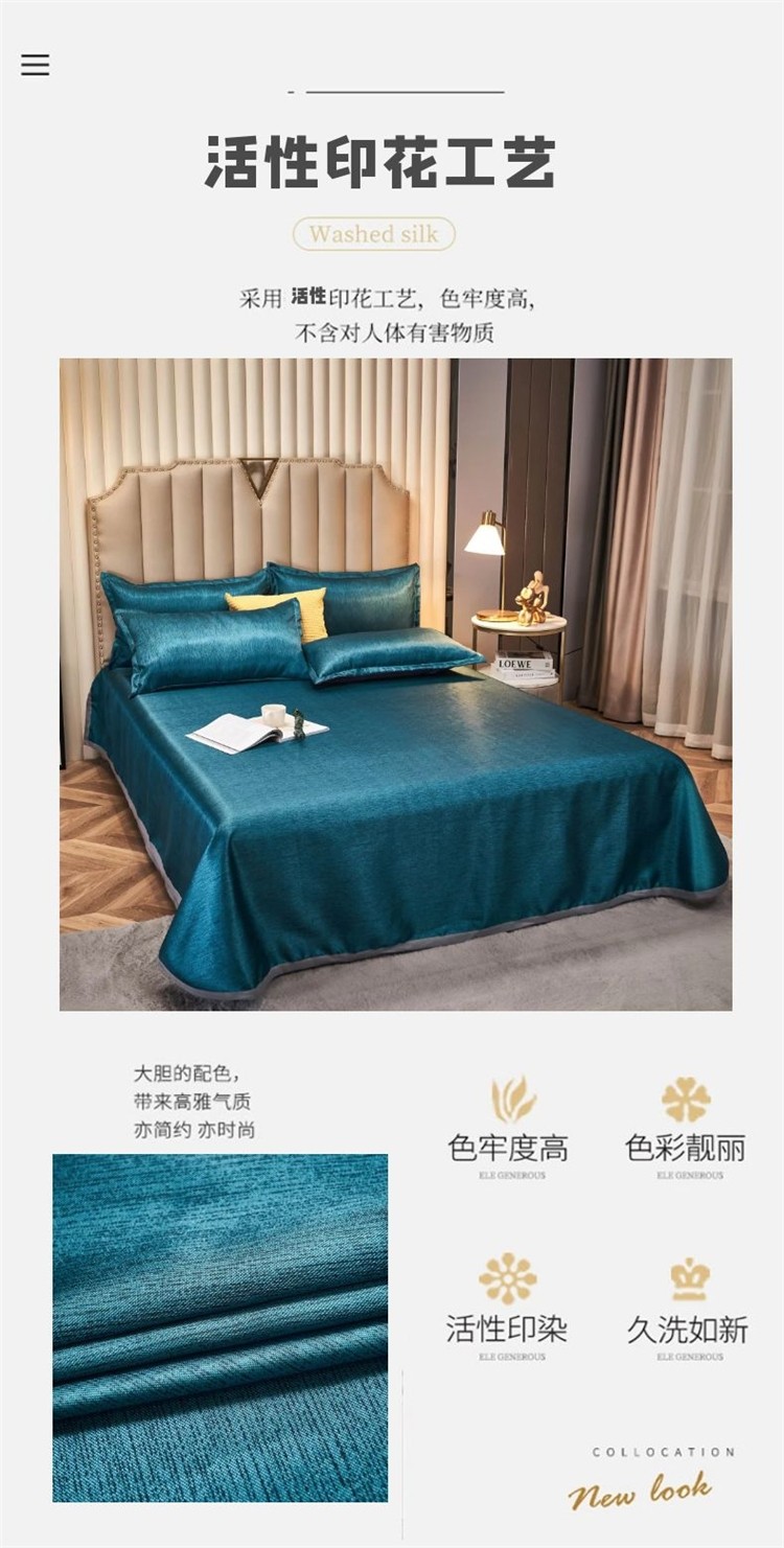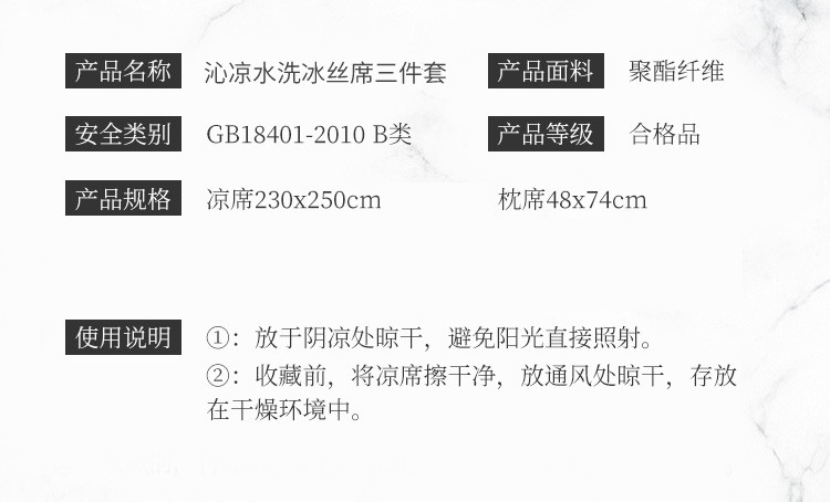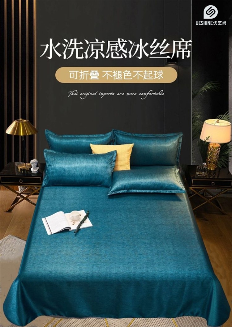 优艺尚 沁凉水洗冰丝席 三件套可水洗凉而不冰折叠床单式230*250CM