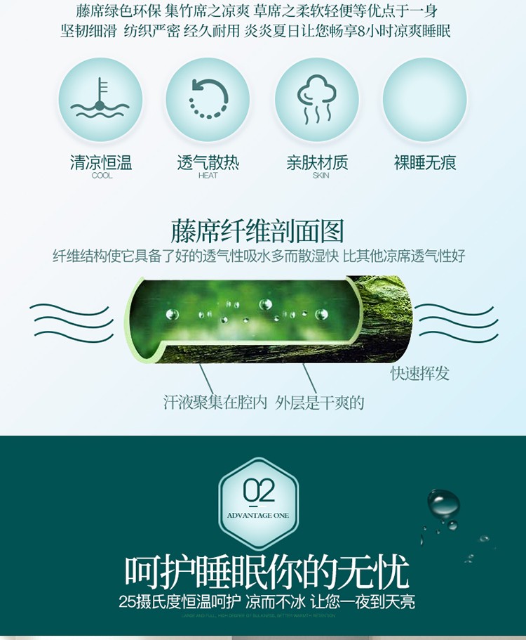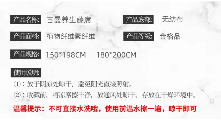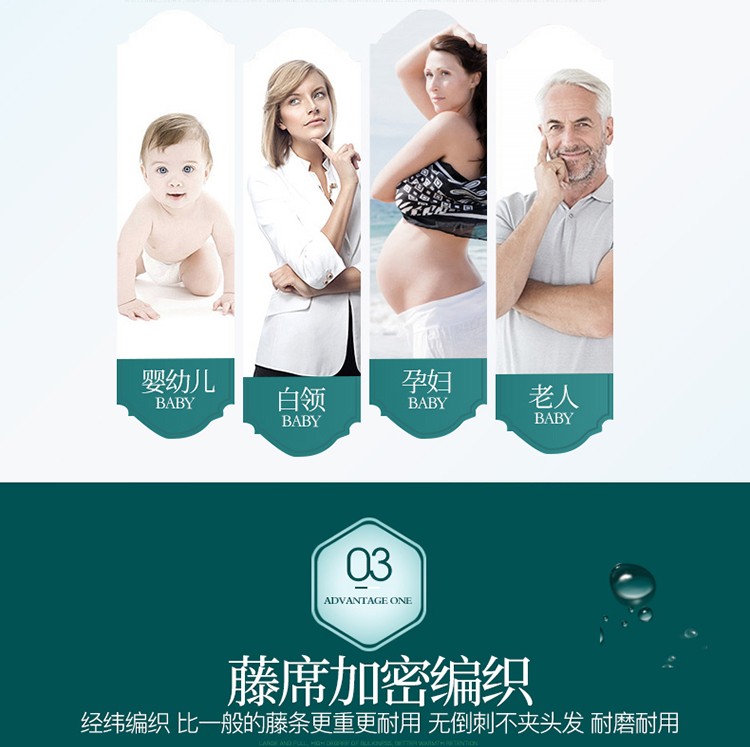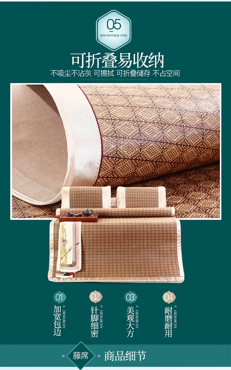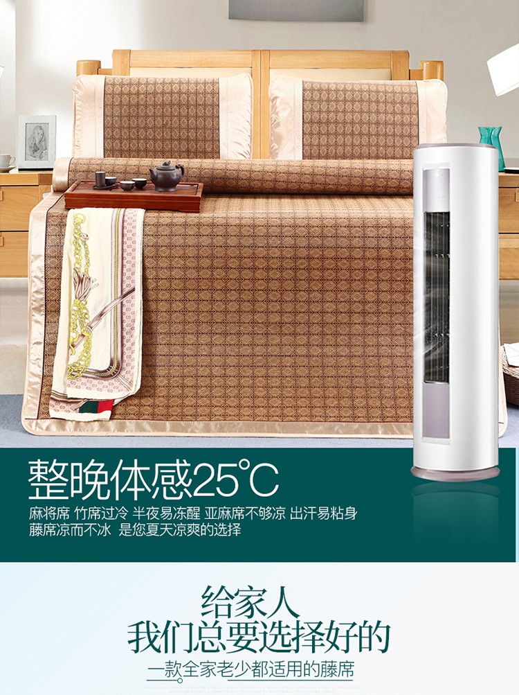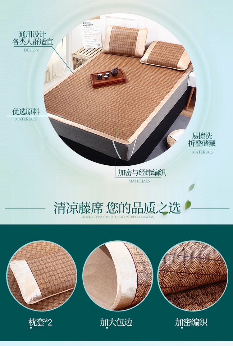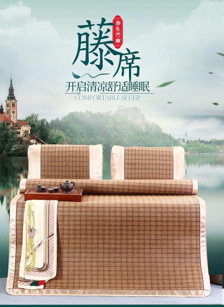 优艺尚 古曼养生藤席三件套 藤编可折叠 吸汗透气防滑 夏凉席