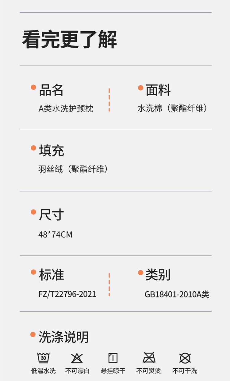优艺尚 A类水洗护颈枕 单只 48*74CM